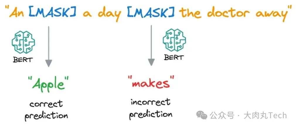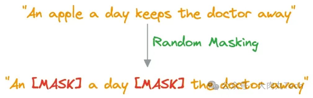 在 MLM 中,BERT 被训练来预测句子中缺失的单词。为此,大多数(不是全部)句子中一定比例的单词会被随机替换为特殊标记[MASK]。