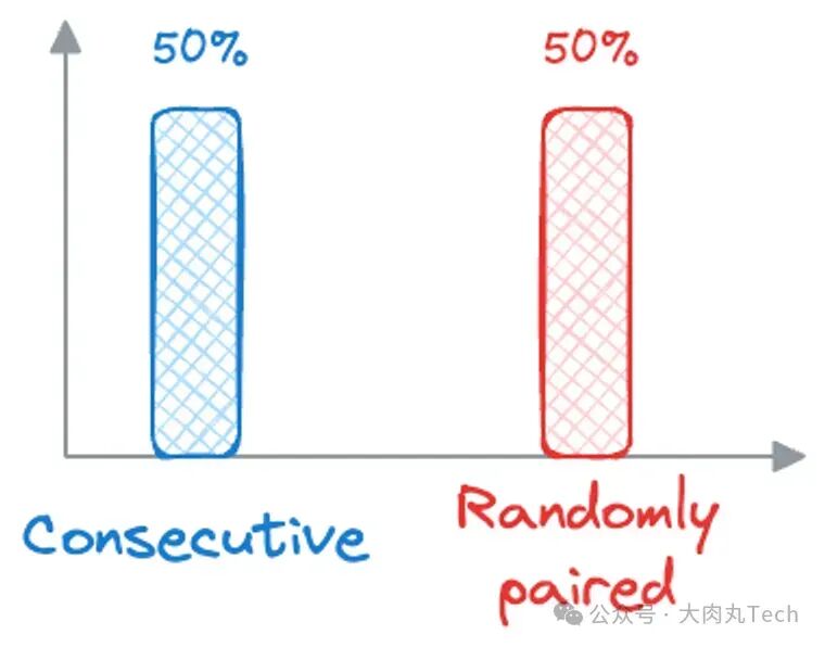 在训练期间,BERT 接收句子对作为输入。其中一半是来自同一文档的连续句子(正例),另一半是来自不同文档的随机配对句子(负例)。
