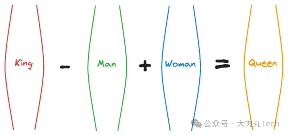 比如当时有一个实验表明,向量运算 (King – Man) + Woman 返回的跟单词 Queen 比较接近