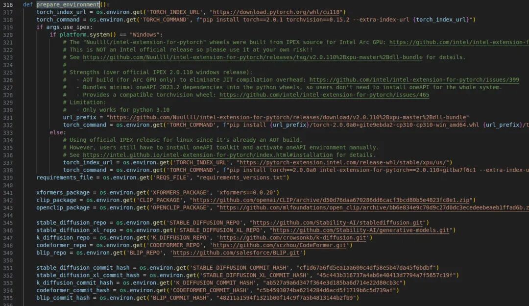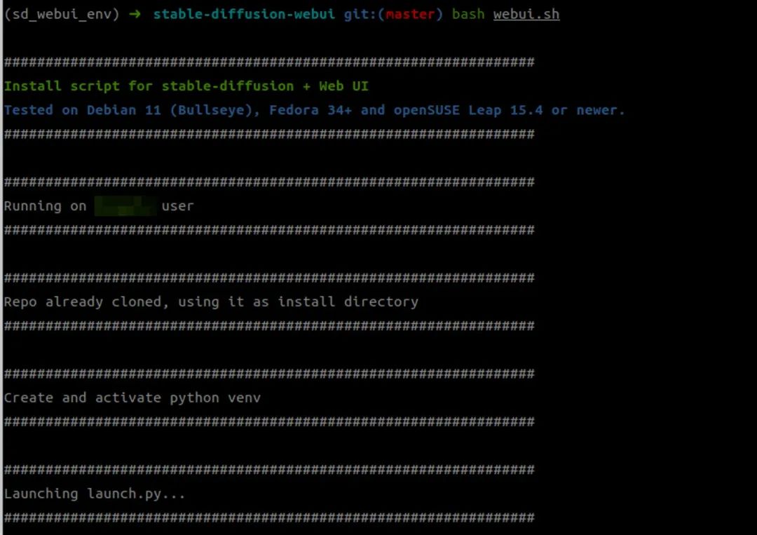 第三部分是依赖的安装,默认情况下是通过 "${python_cmd}" -m venv "${venv_dir}” 命令创建一个虚拟环境,然后再通过 "${python_cmd}" -u "${LAUNCH_SCRIPT}" "$@” 执行launch.py 文件安装依赖。