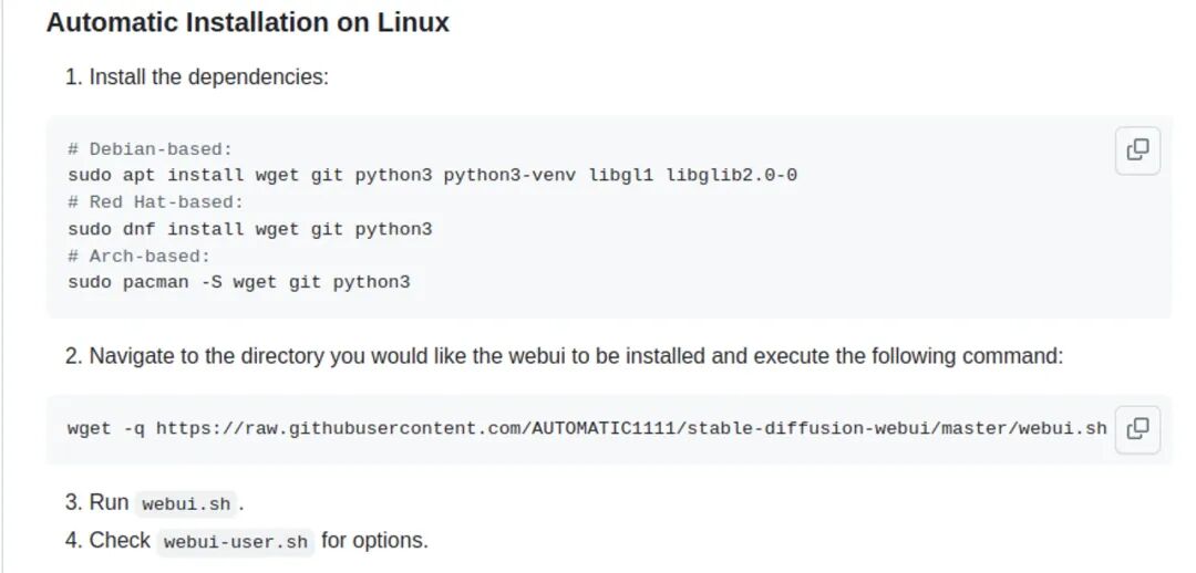 这是官方文档上的安装说明,核心就是 webui.sh 脚本文件,让我们先对其进行拆解下,避免安装得不明不白