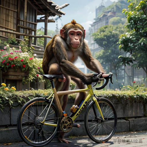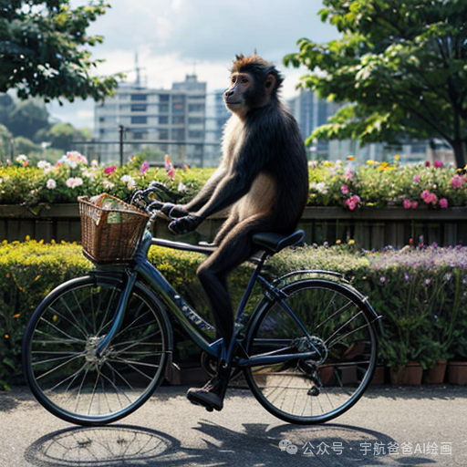 (((((monkey))))),flowers,bicycle,high quality,masterpiece,