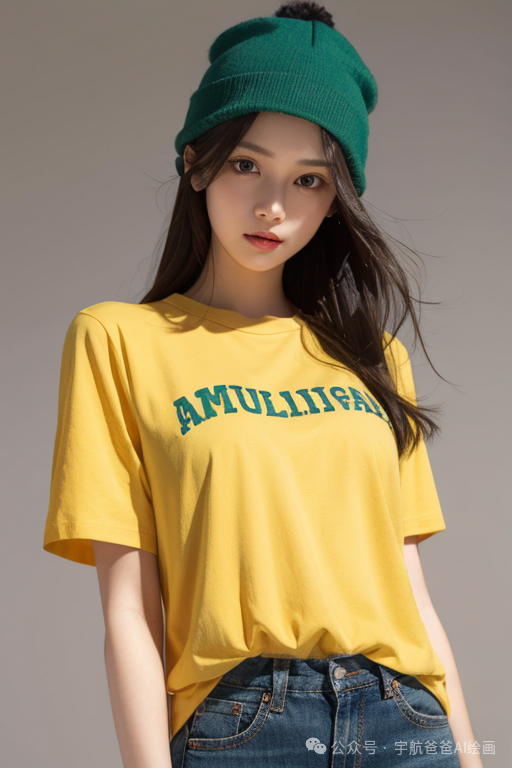 提示词是想要生成一个女孩,带着绿色的帽子,穿着黄色的T恤,但却生成了黄色的帽子