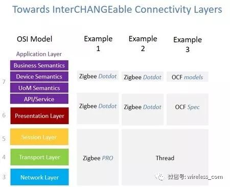 从网络和物理层连接中分离这些应用层定义具有重要意义。 在此之前, 拥有一个"Zigbee 认证产品"意味着它在应用层和 Zigbee 网络和物理层遵守。 现在, 有可能具有 dotdot 兼容的设备, 这些设备在应用层可兼容, 但物理层不同。