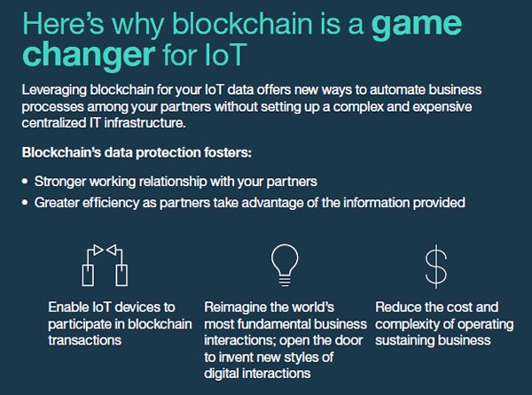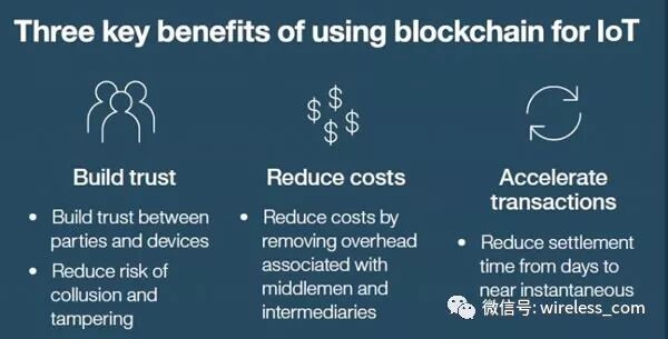 使用区块链对物联网的三个关键好处 来源: IBM infographic