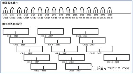 图2 | 802.15.4 和 802.11 b/g/n 通道映射 (全球)