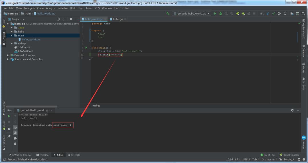 main函数可以借助os.Exit(-1)返回程序退出时状态码,外界可以根据不同状态码识别相应状态.