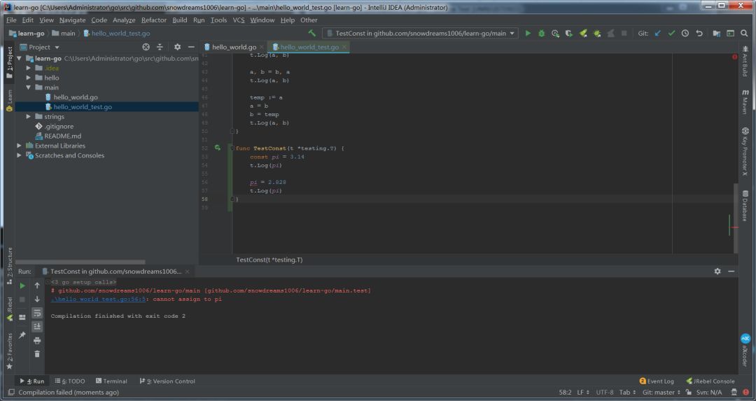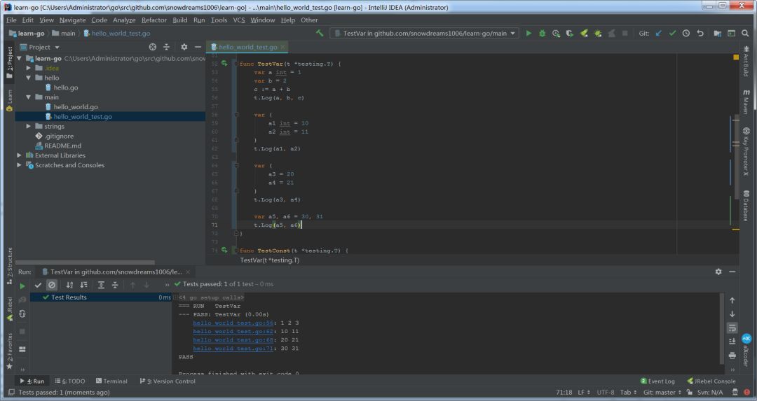 学习 Go 语言时尽可能站在宏观角度上分析变量,而常量可能一笑而过或者编程语言不够丰富,所谓的常量其实也是变量,不管怎么样现在让我们开始 Go 语言的学习之旅吧,本教程涉及到的源码已托管于 github,如需获取源码,请直接访问 https://github.com/snowdreams1006/learn-go