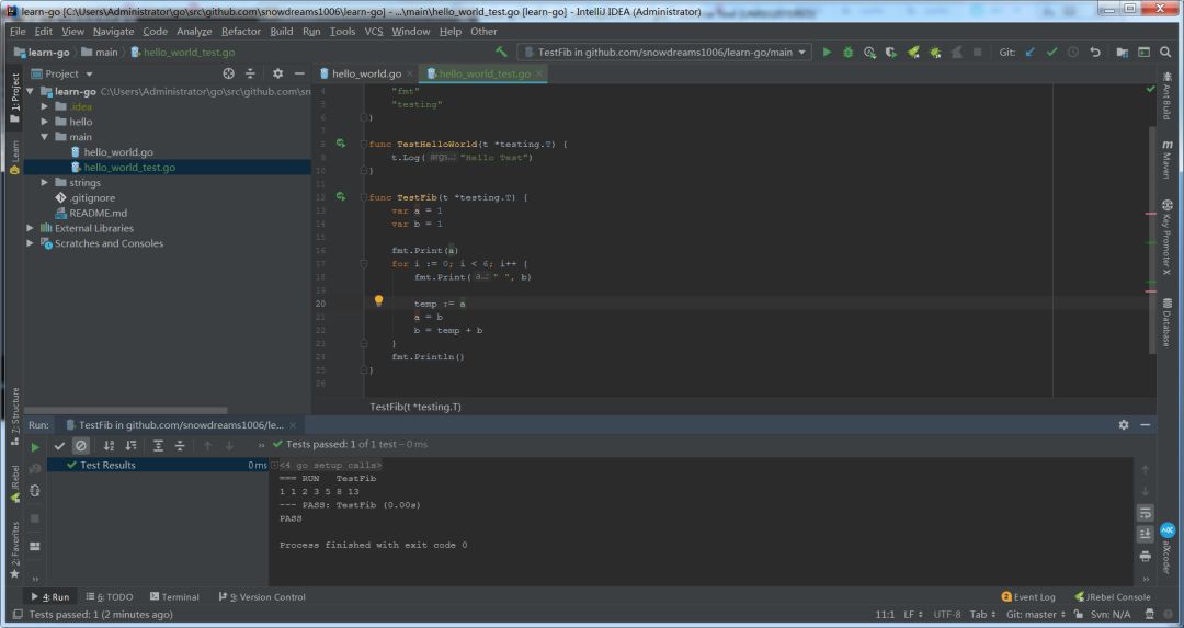 回归正题,下面让我们用 Go 语言实现斐波那契数列吧!