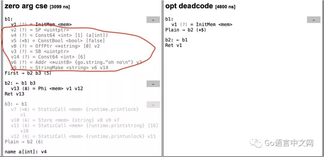 SSA 的多轮优化就是编译原理里常说的后端优化,这一步是 deadcode opt,顾名思义。