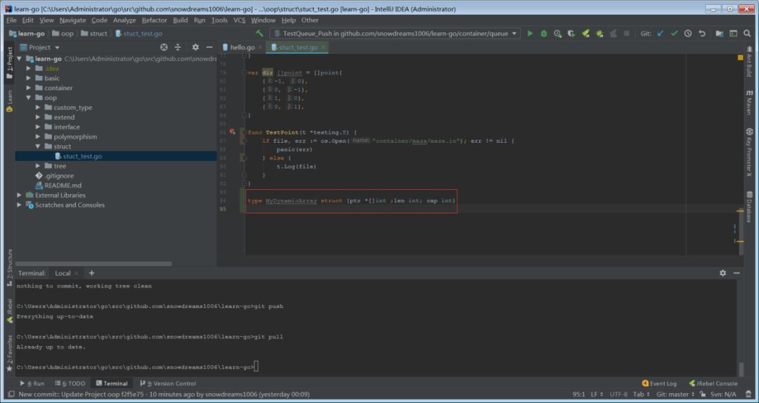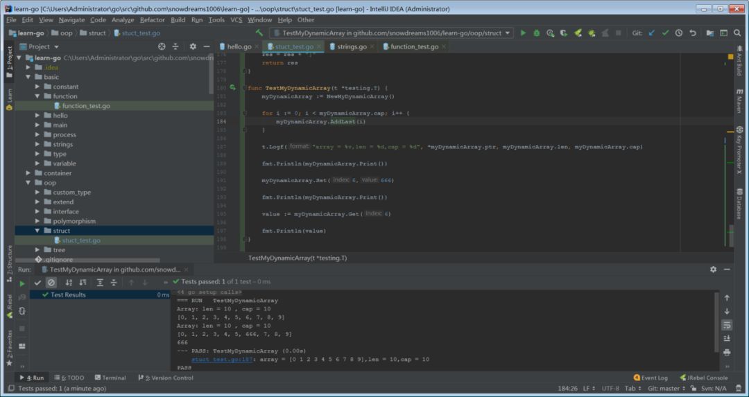 现在,我们已经封装了结构体的数据,定义了结构体的方法以及实现了结构体的工厂函数.那么接下来让我们继续完善动态数组,实现数组的基本操作.