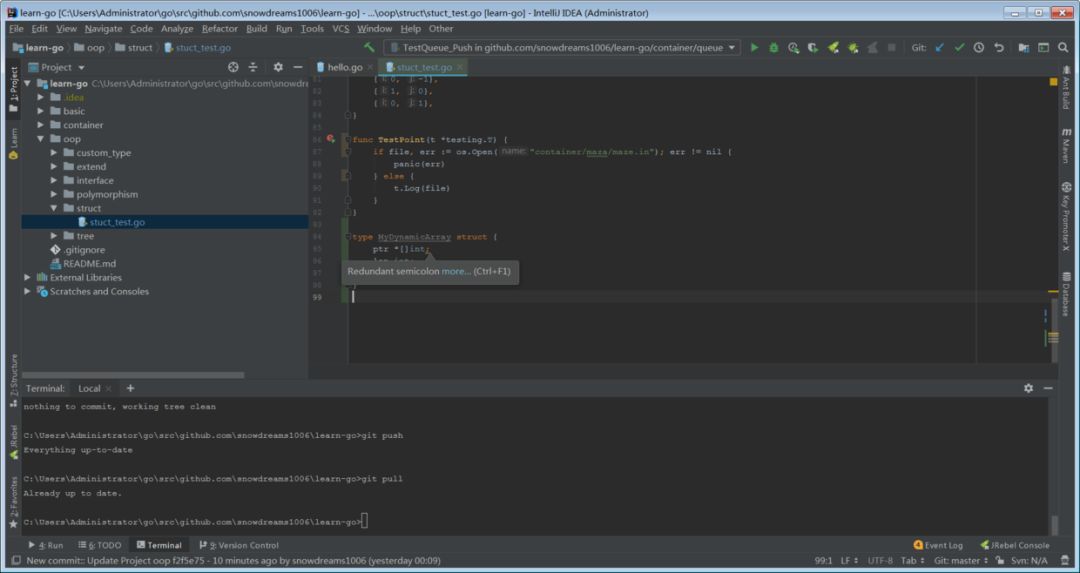 编辑器此时没有报错或警告信息,因此在一行上多个属性之间应该用分号分隔,也就是说 Go 编译器识别多个属性仍然是同其他主流的编程语言一样,使用分号分隔,而开发者却不能用!