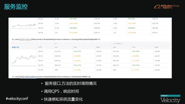 当原本在集中式的系统架构里面,每个页面会贯穿非常多的模块,每个模块都耦合在一个系统中,最终监控出的是表象,无法知道页面打开慢是哪个模块哪个功能逻辑上慢。现在,我们会对每一个服务接口、方法的实时调用情况进行监控,我们还会调用QPS、响应时间进行统计,同时快速感知系统流量变化。