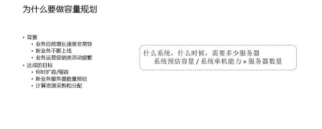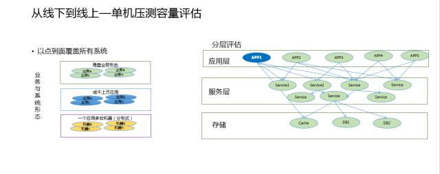 所有的这些它都是以点到面,通过一个个点的容量评估,扩展到一条线,扩展到一个面,最大的问题是没有个人搞得清楚整个架构到底怎么样,是不是有遗漏,整个系统依赖关系里面如果有遗漏,之后会形成整体的崩溃。