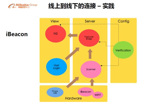 我们在线上线下的联动会遇到一个问题。这个问题在O2O行业已经讲了好几年,真正做成的业务可能到现在也没有,难就难在没有实现真正的线下线上联动。我们到这里也会遇到了同样的问题,这就是线下用户身份识别,并且把用户的线上数据跟线下行为衔接起来,这个问题对于我们来说很难解决。这个人到这里我能知道他是谁,对我来说是一个最难的过程。这个部分我们会做了一套身份识别和设备的校验机制,对用户进行识别,并且进行反向的交互,结合访问量进行用户的访问量交互。