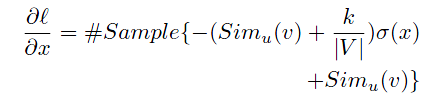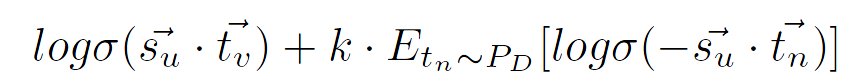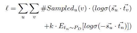 K是负采样数,P_D(n)在图中可用均匀分布替代。则总的目标函数如下: