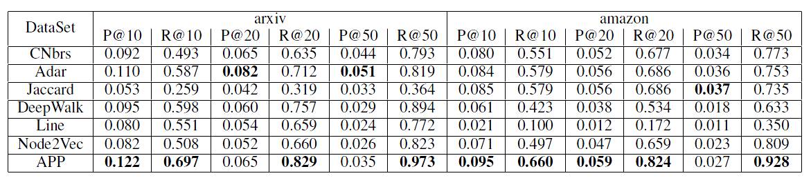 Link Prediction Task(AUC):Embedding方法相对于传统Pre-defined i2i指标来说,在AUC上很占便宜。因为传统指标大多基于2跳以内的关系,包括阿里内部使用的Swing。这样就有很多正例的结果是0——完全无法和负例分开,AUC不高。可以看出我们的方法(APP)在比现有的方法要好一些。