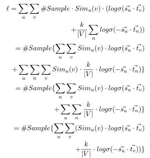 利用Skip-Gram with Negative-Sampling【5】,近似等价于优化