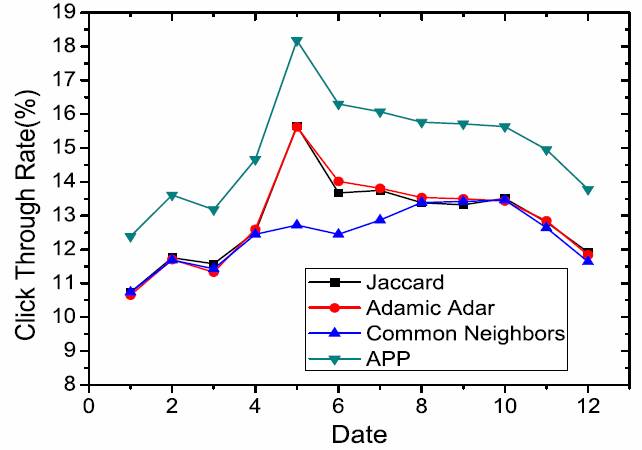 为了缓解用户在店铺内部行为的稀疏性,我们将用户Session中的全网点商品击序列转化成一个全网商品点击转换图。之后应用我们的Graph Embedding方法得到商品向量。该向量可以用来计算用户点击行为所产生的商品之间的相似度。下图是我们与传统topk i2i方法在真实场景中的点击率比较。