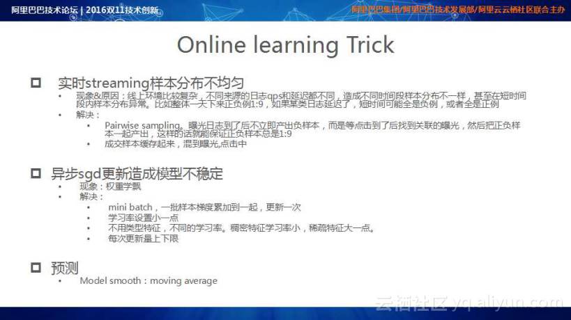 Online Learning和Batch Learning有很大的区别,在Online Learning的研发过程中,总结了一些技巧: