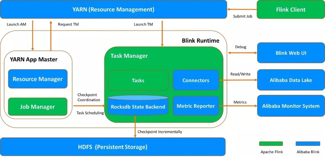 - Flink架构升级,插件化原生支持不同调度系统,并实现了原生运行在Hadoop YARN上
