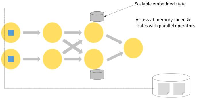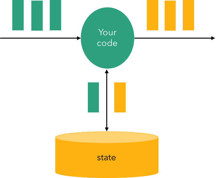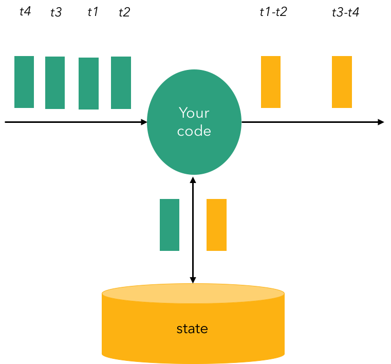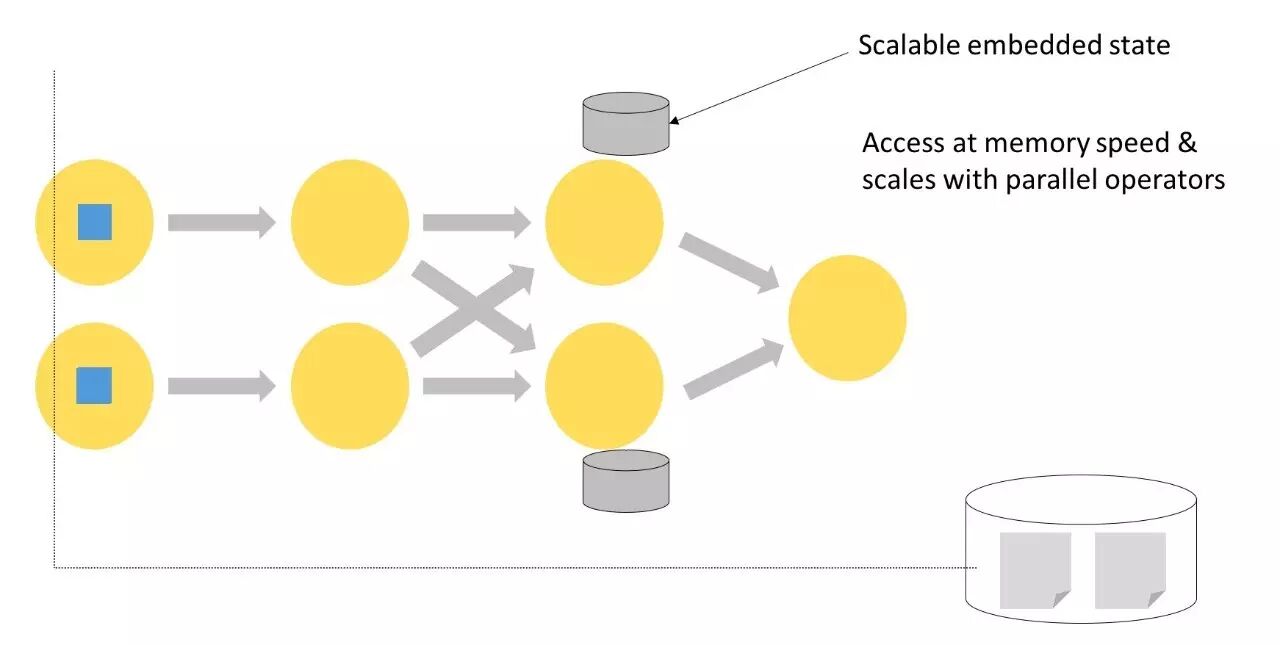 完善的流式计算不仅应该提供实时计算能力,还应该支持计算过程中的状态管理,状态主要是指计算过程中需要的数据或者变量,例如:统计计算中的aggregation(sum/min/max…),机器学习中的feature和model,状态管理包括这些数据的存储、备份、恢复,版本管理,提供读写访问API,并保证一致性,如下图所示: