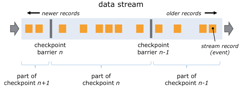 Chandy-Lamport算法的核心思想就是定期在流式计算任务中插入Barrier,然后触发整个流做一次Checkpoint,即将任务的State做一次Snapshot持久化保存。在下次任务重启的时候,可以基于上次成功的Checkpoint进行恢复,过程如下图所示: