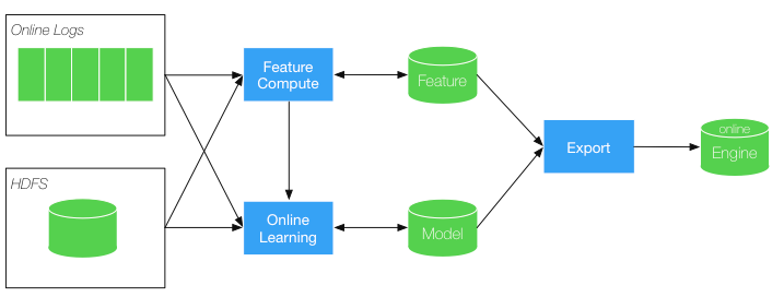 例如:双11当天有很多爆款商品,销售速度非常快,可能很快售罄,如果将用户都引导到这些商品上,会导致用户实际没有成交机会,浪费大量流量,良好的时效性数据可以让在线学习平台较快的预测到这种场景,并将用户流量进行更加合理的分配。因此可以看出,基于实时计算的在线机器学习平台其实已经开始真正走向舞台,并产生巨大价值。