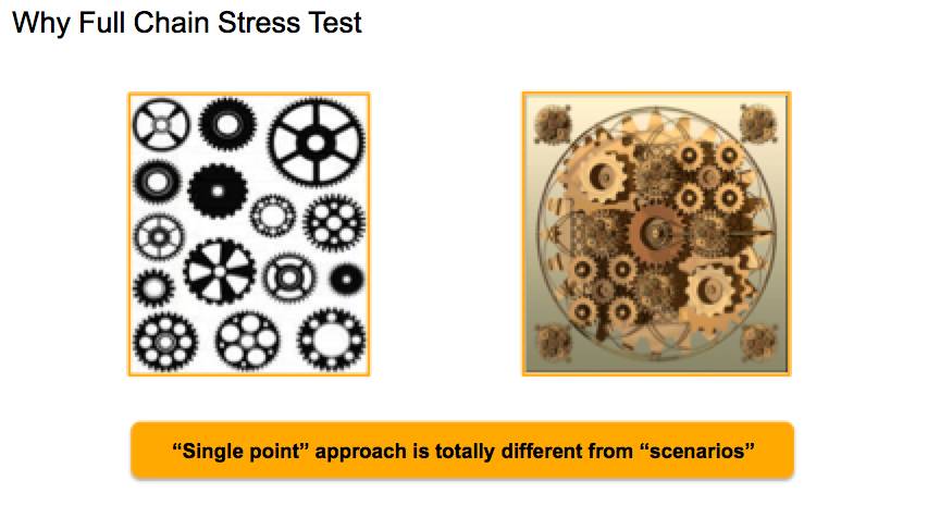 我们对每一个系统都做好了粗略的容量计算,以为一切都会比较顺利了,可是真实场景并非如此,当双11的零点到来的时候,许多系统的运行情况比我们想象的要更坏。原因在于真实的业务场景下,每个系统的压力都比较大,而系统之间是有相互依赖关系的,单机压测没有考虑到依赖环节压力都比较大的情况,会引入一个不确定的误差。这就好比,我们要生产一个仪表,每一个零件都经过了严密的测试,最终把零件组装成一个仪表,仪表的工作状态会是什么样的并不清楚。