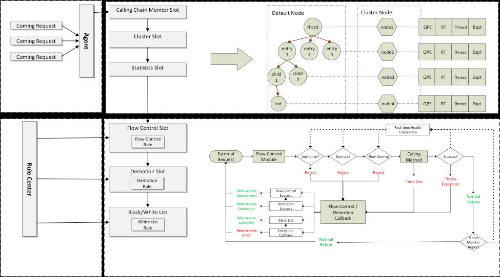 第三步,我们通过从预设好的规则中心接收规则,来根据第二步中统计到的系统状态进行控制。