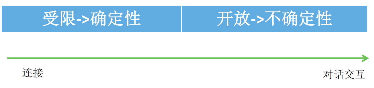所以我认为从连接到对话交互这背后的本质改变是从确定性变为不确定性。那么后面无论是算法还是交互设计,基本上都要想办法提高语言理解的确定性或者是降低交互的不确定性。