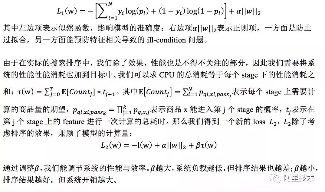CLOES主要采用了一种基于概率的cascade learning方法,将排序分为多轮计算;将排序效果和CPU的计算量作为优化目标,一起建立数学模型,同时优化。除了考虑性能与效率,算法还考虑了用户的搜索体验,保证用户在输入任何一个query后都能在限制时间内得到足够的返回结果。最后CLOES还考虑了电商场景的特殊性,保障了多目标的平衡与可调整。