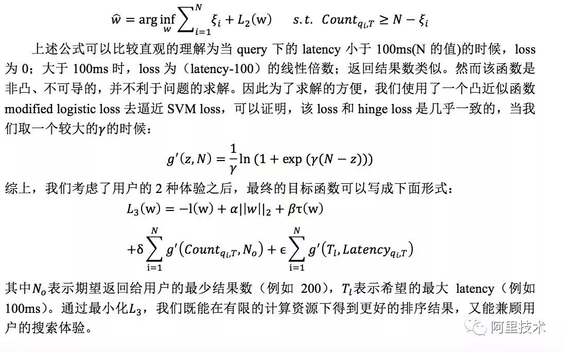 如果直接使用上述模型,确实可以直接降低引擎的负载,但是仍然存在2点用户体验上的问题:一是对于某些query(特别是hot query),可能计算latency仍然会非常高;二是某些query(一般是长尾query)下,返回给用户的结果特别少。那么为了解决这2个问题,我们进一步的增加了2个约束:单query下的latency不能超过100(只是举例,不一定是100)ms;返回给用户的结果数不能小于200。那么很自然的,我们会想到使用类似SVM的loss形式: