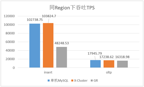 测试同域下的集群,Insert我们使用300并发线程、 OLTP使用400并发线程,热点更新使用300并发线程。