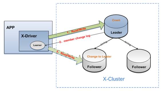 X-Cluster有完整的Client-Server生态。所以整个系统不需要外部组件的介入,能够自封闭的成为一个生态闭环。作为客户端的X-Driver能够订阅Server端发生的一切改变,从而进行自动寻主,实例列表动态维护等功能。客户端的元数据就保存在X-Cluster服务内部。相比外置的元数据中心,这套自封闭体系能够以最快的时间获取到准确的集群变化。降低集群变更对用户的感知程度。
