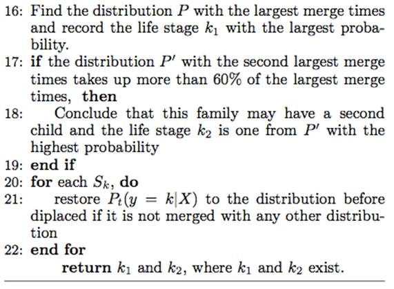 其中用于对新分布进行归一化。如果多个分布概率最高的生命阶段不同,那多个分布都会被保留以便将来可能的融合。我们会记录每个分布融合的次数,推断的生命阶段由融合次数最多的分布决定。当新的单月分布生成时,将按照相同的逻辑进行算法的下一次迭代。