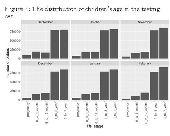 为了证明我们设计的方法是有效的,我们利用半年的taobao.com的数据做了多组实验(从2016年9月到2017年2月)。图一和图二分别简要说明了训练数集和测试数集中婴儿生命阶段的分布。