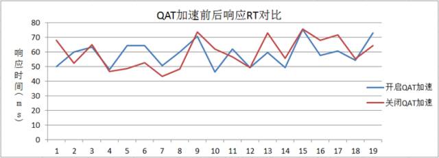 相同条件下,开启与关闭QAT加速后,响应RT波动不相上下,如下所示: