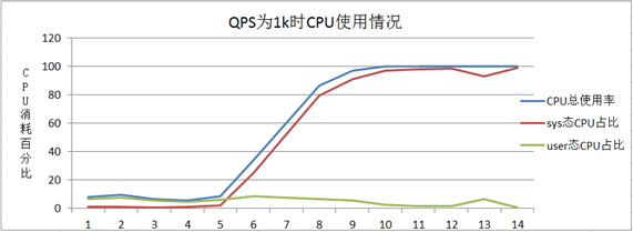 - a. 使用的第一版驱动Intel-Qat2.6.0-60,当QPS为1k左右时CPU很快打满(注:正常情况下QPS为1k时,CPU消耗6%左右),且CPU消耗中90%以上都是消耗在内核态,如下图所示: