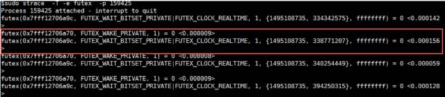 分析其Tengine的worker进程堆栈信息发现open、ioctl都是成对出现(即一次http请求出现4次该系统调用),该现象反馈给Intel的研发同学后得知是由于新驱动的Zlib Shim导致,通过优化改造后open、ioctl调用频率明显减少。但是其futex系统调用频度却没有减少,还是导致内核态的CPU占比较高,通过strace跟踪发现一个http压缩请求后会多次调用futex、如下图所示,同Intel研发同学了解到Zlib Shim采用多线程方式,其futex操作来自zlib shim等待QAT压缩或解压缩数据返回的逻辑。