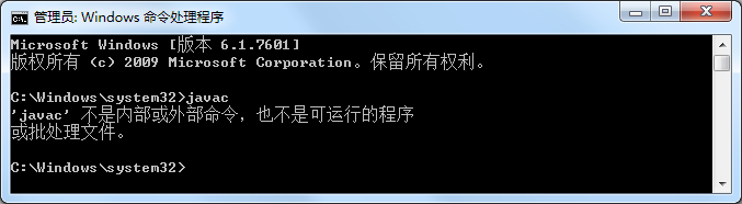 path环境变量是系统环境变量中的一种,它用于保存一系列的路径,每个路径之间以分号分隔。当在命令行窗口运行一个可执行文件时,操作系统首先会在当前目录下查找是否存在该文件,如果不存在会继续在path环境变量中定义的路径下寻找这个文件,如果仍未找到,系统会报错。例如,在命令行窗口输入“javac”命令,并按下回车,会看到错误提示。如下图所示:
