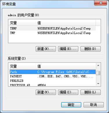 右键单击桌面上的【计算机】,从下拉菜单中选择【属性】,在出现的【系统】窗口中选择左边的【高级系统设置】选项,然后在【高级】窗口中单击【环境变量】按钮,打开【环境变量】窗口,如下图所示: