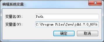 Files\Java\jdk1.7.0_60\bin”,末尾用英文半角分号(;)结束,与后面的路径隔开。如下图所示: