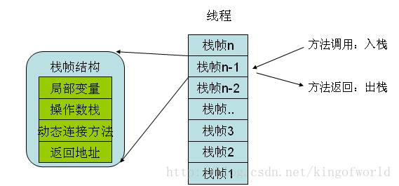 方法执行完毕后相应的栈帧也会出栈并释放内存空间。