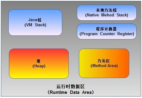 根据《Java虚拟机规范》的规定,运行时数据区通常包括这几个部分:程序计数器(Program Counter Register)、Java栈(VM Stack)、本地方法栈(Native Method Stack)、方法区(Method Area)、堆(Heap)。