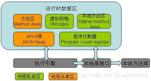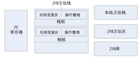 JVM定义了不同运行时数据区,他们是用来执行应用程序的。某些区域随着JVM启动及销毁,另外一些区域的数据是线程性独立的,随着线程创建和销毁。